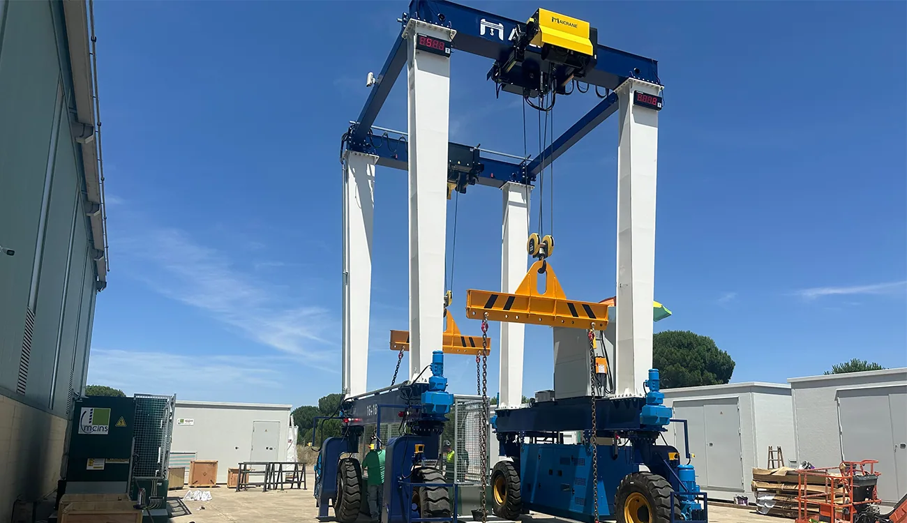 Para responder a este desafío, AICRANE suministró una grúa pórtico neumático totalmente personalizada, diseñada específicamente para el transporte, elevación y reubicación de subestaciones eléctricas de gran tonelaje.